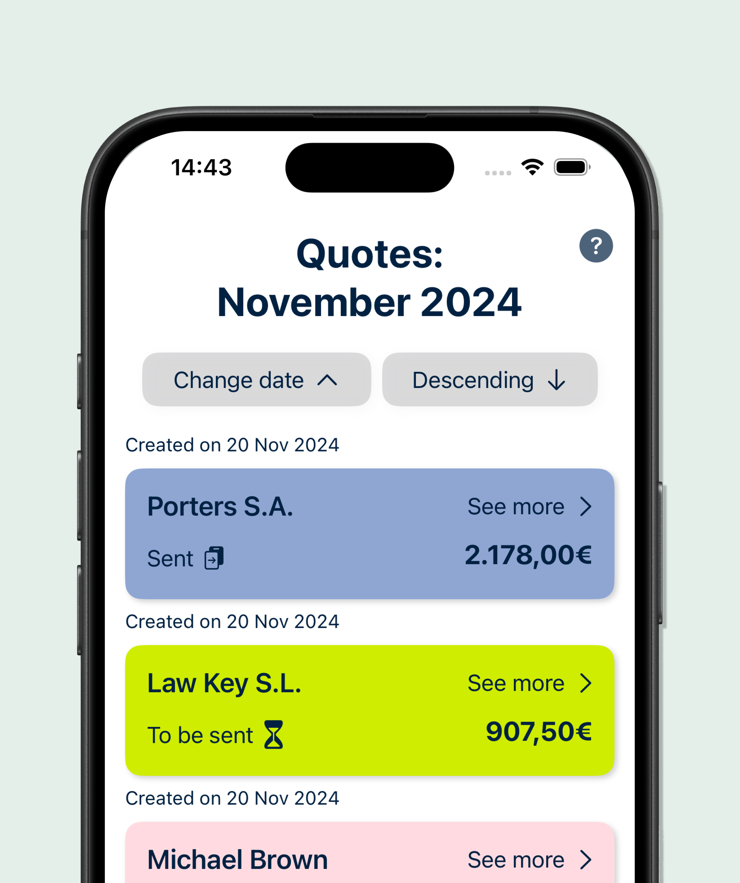 Easily arrange your quotes, see the status of each one and send them to your clients in one additional click.